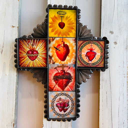 View full detailsSmall hand cut Tin Cross with assorted Sacred Heart tiles. Six assorted tiles decorate the interior of the tin cross. Cross has decorative edging....