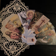 10-Pack of Bookmarks - 10 different images. Images include: Parvulus Pastor (Tiny Shepherd), The Good Thoughts of the Newborn Soul, Our Lady of Mt. Carmel, Divine Mercy/Colored SC, Alleluia Cross, Mystical Rose, Young Jesus in boat, Mary's Kiss and Virgin tile. A Full of Grace USA Original Product.
