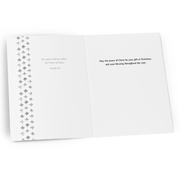 Interior copy Page 3 (right page when card is open): May the peace of Christ be your gift at Christmas and your blessing throughout the year.