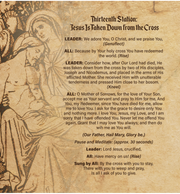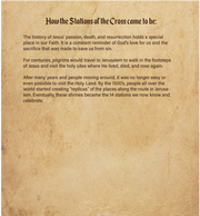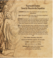 The 20 page Stations of the Cross booklet is adopted from the Stations of the Cross composed by Saint Alphonsus Liguori. This beautiful booklet is styled with old world Catholic imagery, and clearly leads any group or individual through the 14 stations plus a closing prayer. Includes a short narrative on How the Stations of the Cross came to be.