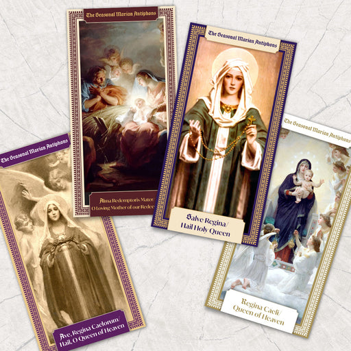 View full detailsThe Seasonal Marian Antiphons Holy Card Set (one of each card/4 total): 1) Alma Redemptoris Mater/O Loving Mother of Our Redeemer ...