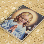 The image was created in 1935 by Mother Margaret Mary Nealis r.s.c.j (1876- 1957). Called "Stella Matutina", Latin for Morning Star; the image depicts the Blessed Mother as a young child in prayer surrounded by Lilies (symbolic of purity) with the lone Morning Star shining brightly in the dawn sky. Translation and artist information is featured on the interior cover or back page. A Full of Grace USA Original Product.
