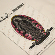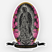 The original artwork for this decal is inspired by the Virgin De Guadalupe. The Virgin De Guadalupe comes directly from an apparition of Mary Mother of God in the Americas in 1531. The board features an image of Our Lady and the Angel Gabriel at her feet. The back ground has Castilian Roses just like the ones in the apparition.