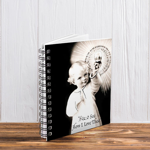 View full detailsThe black and white image depicts the Christ Child lifting up his Sacred Heart as it forms the shape of the Eucharist with a faint cross in the mid...
