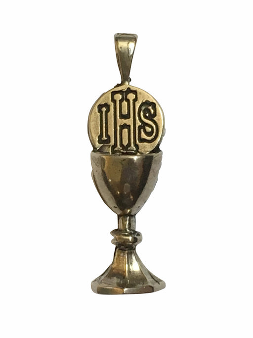 View full detailsThe Eucharistic Chalice pendant. One-of-a-kind 3-D art, hand-sculpted for Full of Grace USA in Colorado. Pendant comes in White Bronze & ...