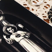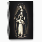To Jesus, Through Mary/Marian Consecration Journal, featuring an antique holy card image of the child Jesus, pointing up to his Mother, the Blessed Virgin Mary as he points to his Sacred Heart. Reminding us that the quickest way to his Sacred Heart is through consecration to his Mother. The Back cover features St Louis de Montfort's Consecration fo Mary: