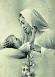 Glossy black & white print of the "Mary & Baby Jesus" holy card image suitable for framing.