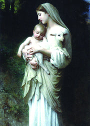 Glossy full-color print of the The Innocence image suitable for framing. Image is from a turn-of-the-century painting by William Adolphe Bouguereau