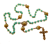 St. Benedict Vintage Art Light-Blue Rosary with Filigree Crucifix by Shannon