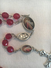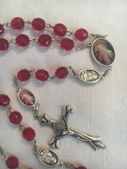 Divine Mercy Vintage Art Ruby Rosary with Crucifix by Shannon