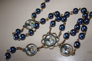 St Christopher Vintage Art Blue Pearl Rosary