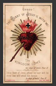 Copy: Cease! The Heart of Jesus is with me: Thy Kingdon Come. Divine Heart of Jesus, inflame my heart with the divine love with which thou burnest. 50 days of indul. Pius IX