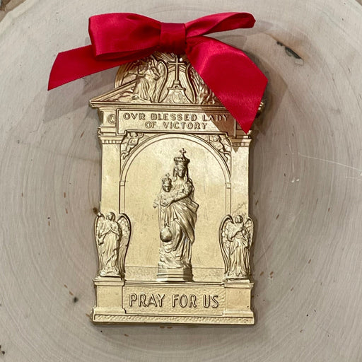 A truly unique addition for your family Christmas tree! Vintage Catholic Christmas ornaments are hand-poured in Colorado, decorated with a red satin ribbon and include a tree hanger.