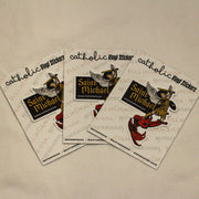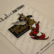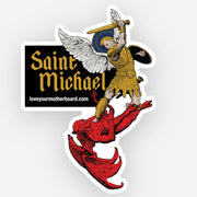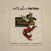 The artwork for the decal was created by Catholic Artist Shanti Guy. Shanti creates comic books about Saint Michael the Archangel based on real life apparitions of this great Saint. You can check out his skateboard design of this at loveyourmotherboard.com.