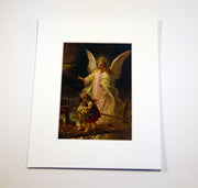 Glossy full-color print of the Guardian Angel with Children on Bridge suitable for framing. Image is from a turn-of-the-century, antique German postcard.